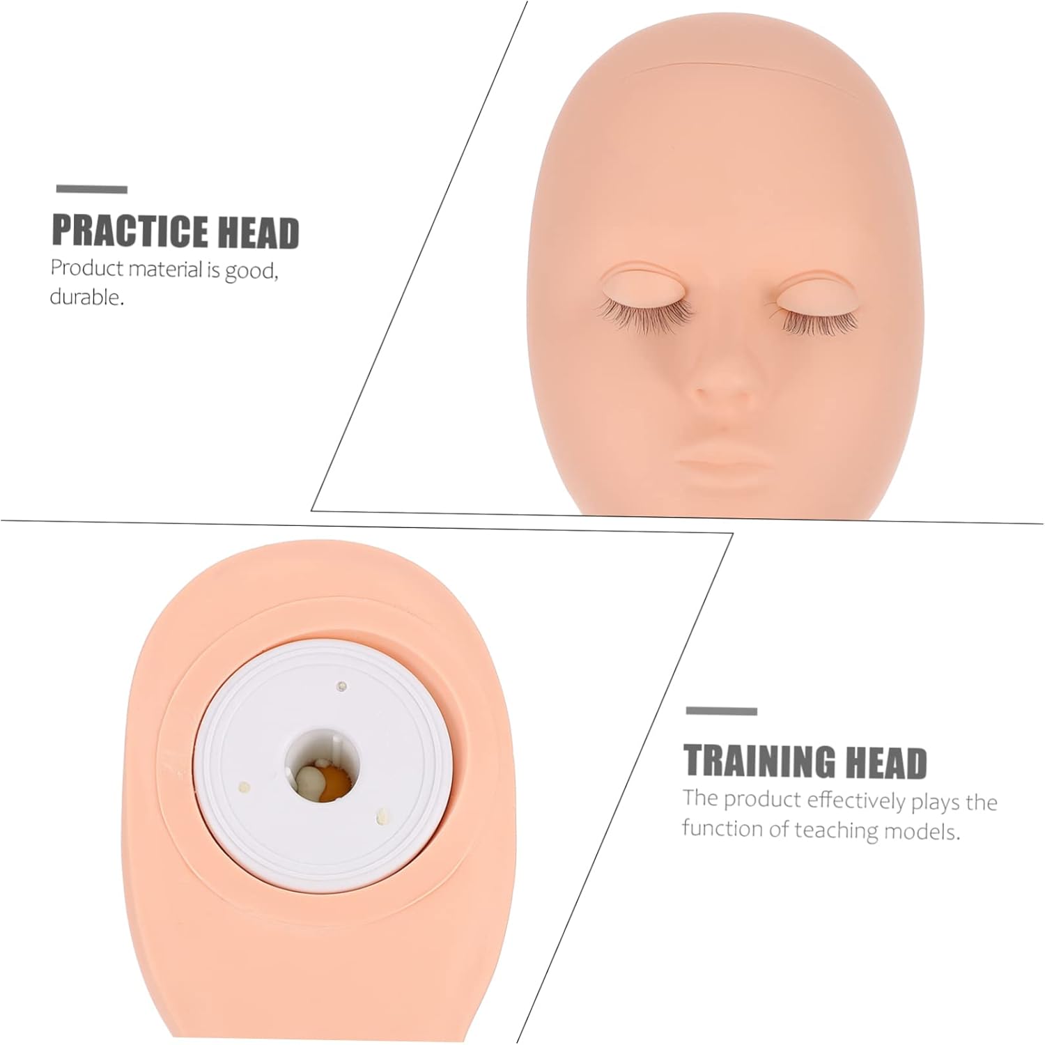 Include 1 x head mold 1 x pair of eyelids Characteristics -Material: Silicone mannequin face head -Size: 28.50X13.50X9.00cm/11.20X5.31X3.54 in mannequin head. - You can send it as a your friends who are planting for lash extension practice, give them a little practice head. - Very detailed design, from face spacing to the eyelid curvature, designed to replicate a real human face cosmetology training head. - Removable eye part, bring huge convenience for eyelash extension practice makeup eyelash practice head. - Giving you the closest possible experience to a real human, greatly the effect of practice training head. - This mannequin training head has a smooth and realistic surface texture that simulate the human skin eyelash extension head.Goods Descriptionmakeup training head Made of silicone, very smooth, like real skin, which efficiently the practice effect.practice head A useful tool to learn eyelash extension quickly and easily.mannequin head rubber Comes with a mannequin head and 2 pieces eyelids, a nice combination for you to practice