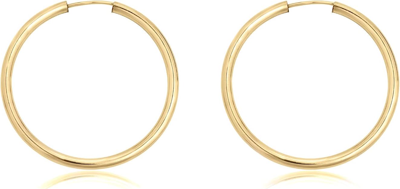 Add a touch of fashion and flair to your look with these gorgeous 14K Yellow Gold-filled hoop earrings. They come in several sizes with 2.25mm in thickness. They're sturdy and have a continuous or endless design which make them perfect for everyday wear. The earrings comes stamped with "1/20 14K GF" guaranteeing their authenticity. The earrings arrive in an elegant gift box making it perfect for gifting to your loved ones on any special occasion. Jewelry Care: Over the course of time, body oil and skin products can collect on jewelry and leave a residue which can cause the metal and brilliance of stones to dull. To keep your jewelry looking bright and new, take a soft headed toothbrush with some mild soap and gently brush the front and back of the stones and metal. Rinse thoroughly with tepid water. Steam cleaning works well, but do not steam emeralds or opals as high heat can damage these stones. AVORA fine jewelry is delicate in nature and should be handled carefully as outlined in the care instructions.