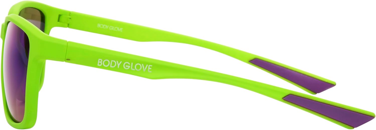 Introducing the vibrant Body Glove sunglasses, where style meets performance in perfect harmony. These eye-catching neon citron way-style glasses are designed for active outdoor enthusiasts, beachgoers, and casual sports participants who seek both flair and functionality. The dynamic frames are made with 100% recycled plastic, ensuring durability while providing a comfortable fit for all-day wear. Experience superior sun protection with 100% UVA-UVB lens protection, safeguarding your eyes from harmful rays during sun-soaked adventures. The impact-resistant and scratch-resistant lenses provide longevity, while the multilayer color mirror lens offers a trendy look that stands out. Whether you're hitting the beach, exploring nature, or attending festivals, these retro sunglasses are the ideal companion. With their colorful design and sporty appeal, the Body Glove sunglasses are perfect for fitness enthusiasts, travelers, and families alike. Elevate your outdoor experience with these versatile sunglasses that seamlessly blend fun and protection. Enjoy every moment in the sun with the confidence that your eyes are shielded and your style is on point. Choose Body Glove sunglasses and embrace your adventurous spirit.
