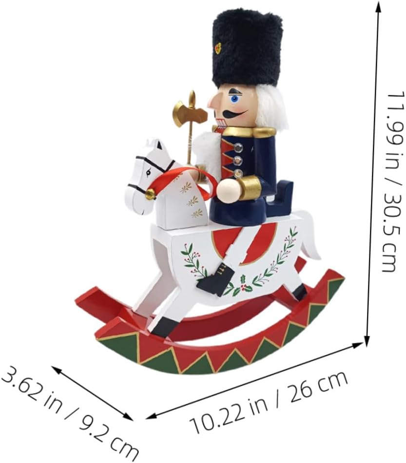 Package Include 1 x wooden horse nutcracker Features -Beautiful christmas decoration: this rocking horse nutcracker is a beautifully crafted decoration that adds a festive touch to your christmas celebrations nutcracker hanging decoration -Sturdy quality: each nutcracker is carefully handmade, ensuring attractive and intricate detailing in every piece chinoiserie table nutcracker -Versatile placement: suitable for desktops, bookshelves, and other surfaces, this piece brings a festive and colorful touch to any space - Size: 30.50X26.00X9.20cm/11.99X10.22X3.62in -Material:Wooden -Unique soldier: featuring a royal soldier design, this ornament stands out with its unique and captivating appearance christmas nutcracker puppet -Ideal holiday giving: this ornament makes an excellent christmas present, bringing warmth, joy, and festive cheer to your loved ones desktop nutcracker puppet -Product Info:Nutcracker ornaments - Goods Informationhand-painted nutcracker figure Use them as part of your xmas nutcracker collection or as unique Christmas tree hanging decor.christmas desktop nutcracker These nutcracker hanging decorations are a delightful way to celebrate the festive season.traditional wooden nutcracker Their intricate designs and festive colors make them a standout addition to any holiday display, ensuring your home is filled with seasonal cheer