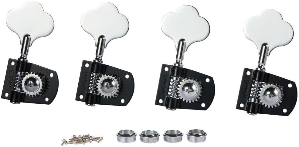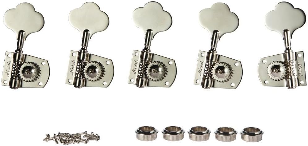 Cloverleaf 5 String Bass Guitar Tuners Bass Tuning Machine Heads 5 String Bass Tuning Keys Pegs for American Standard/Highway One Series JB Jazz Bass/PB Precision Bass Black with Gold 4R1L