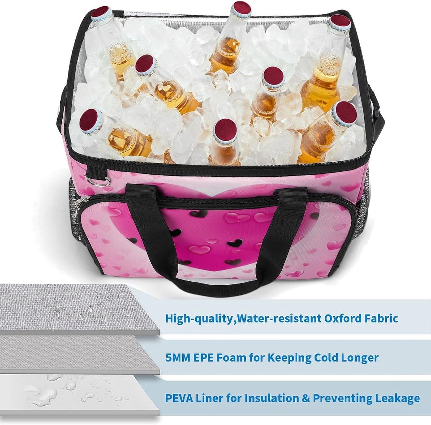 Our Pink Love Heart camping ice pack of sturdy Oxford cloth, which is waterproof and durable. The multi-layer insulation structure is carefully designed inside, which has a significant heat preservation and cold preservation effect, which can keep ice drinks cool for a long time and hot food warm. The large capacity is enough to accommodate a variety of camping food and drinks. The comfortable handle and adjustable shoulder strap are convenient for carrying or carrying. The multi-pocket design on the outside is convenient for storing scattered small items. Oxford cloth is easy to clean and can be restored to cleanliness with simple treatment after use. Whether it is camping, picnic or outdoor party, it is your practical and considerate companion, easily meeting your refrigeration and heat preservation needs.