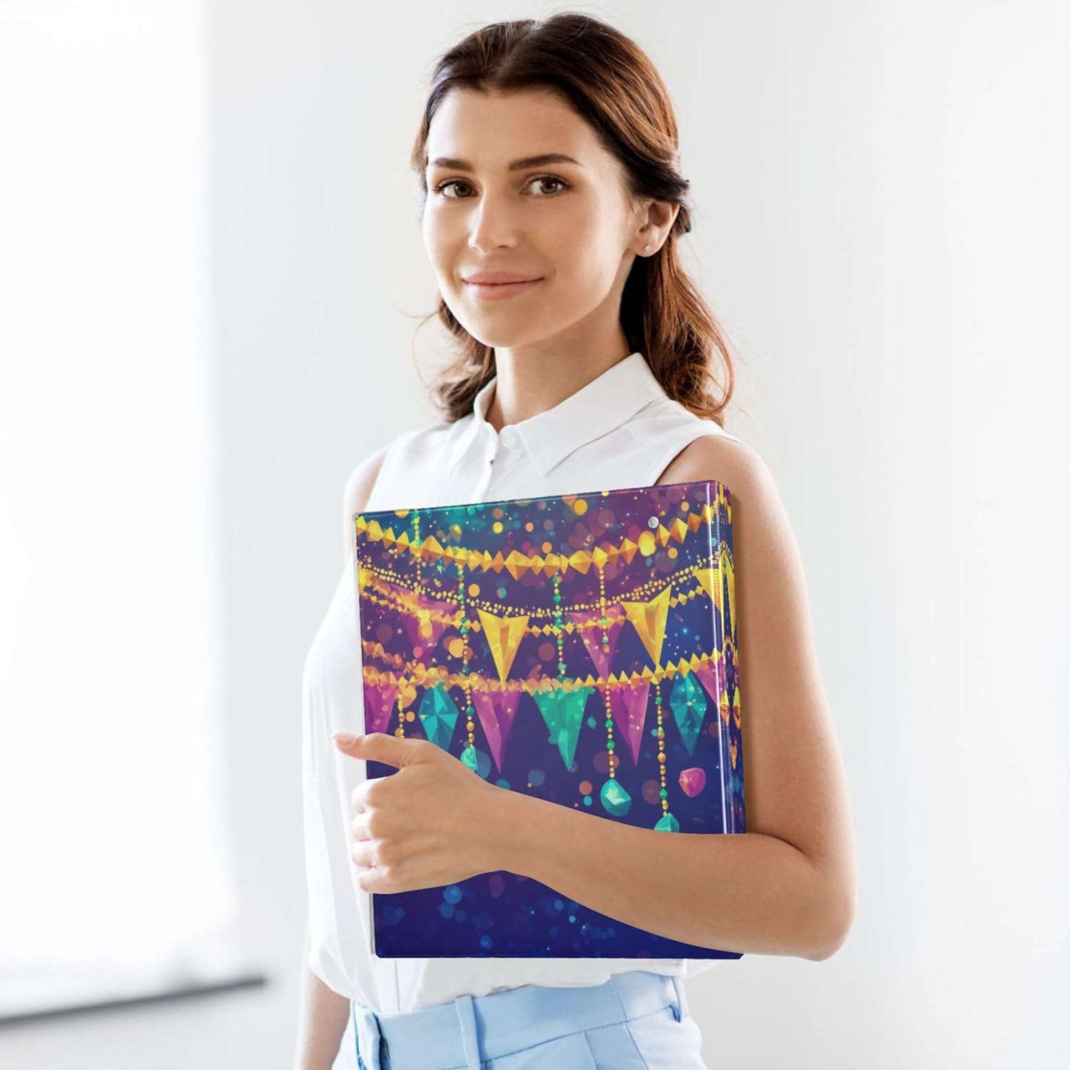 Mardi Gras Theme 3 Ring Binders, 1.5” Round Ring Binders with Clipboard - Letter Size, 3 Interior PVC Clear Pockets & Anti-Slip Clip for Office School Supplies, 2PCS