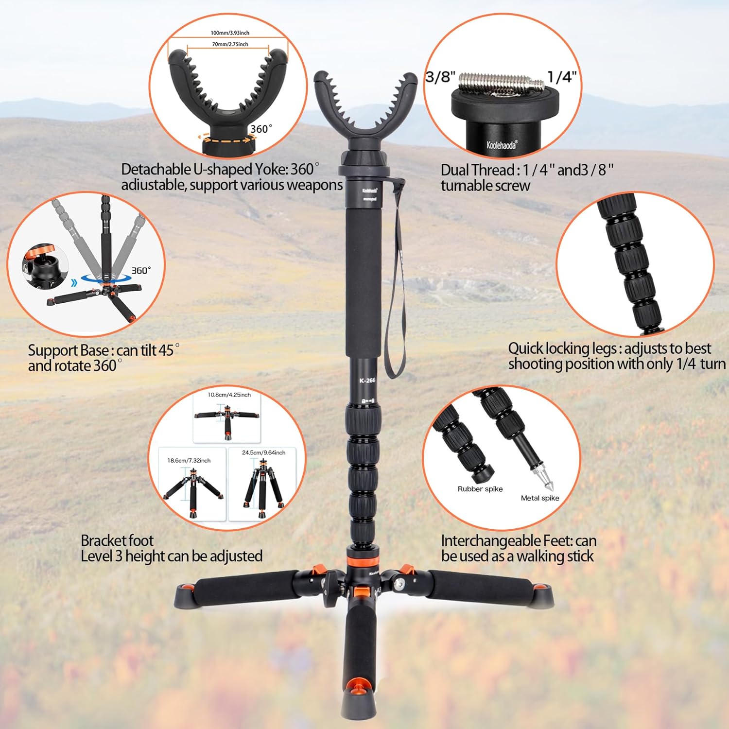 | Included Components | 1 x Phone Clip, 1 x Allen Key ., 1 x U-shaped Yoke, 1 x k-266 Monopod, 1 x mini tripod, 1x Rubber Feet,1 x Metal Spike, |