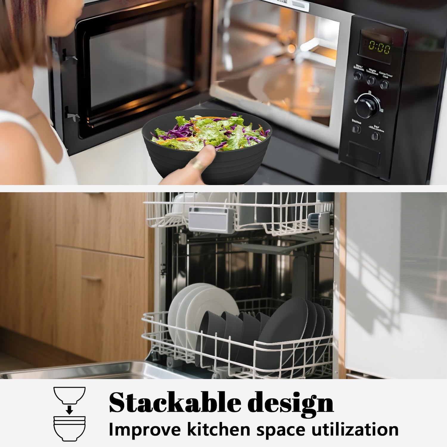 • PREMIUM WHEAT STRAW MATERIAL: The plates and bowls sets are made of wheat straw fiber which is reusable and BPA free. And they won't affect taste or smell of your meals. They combine the look of classic tableware and advantages of wheat straw material